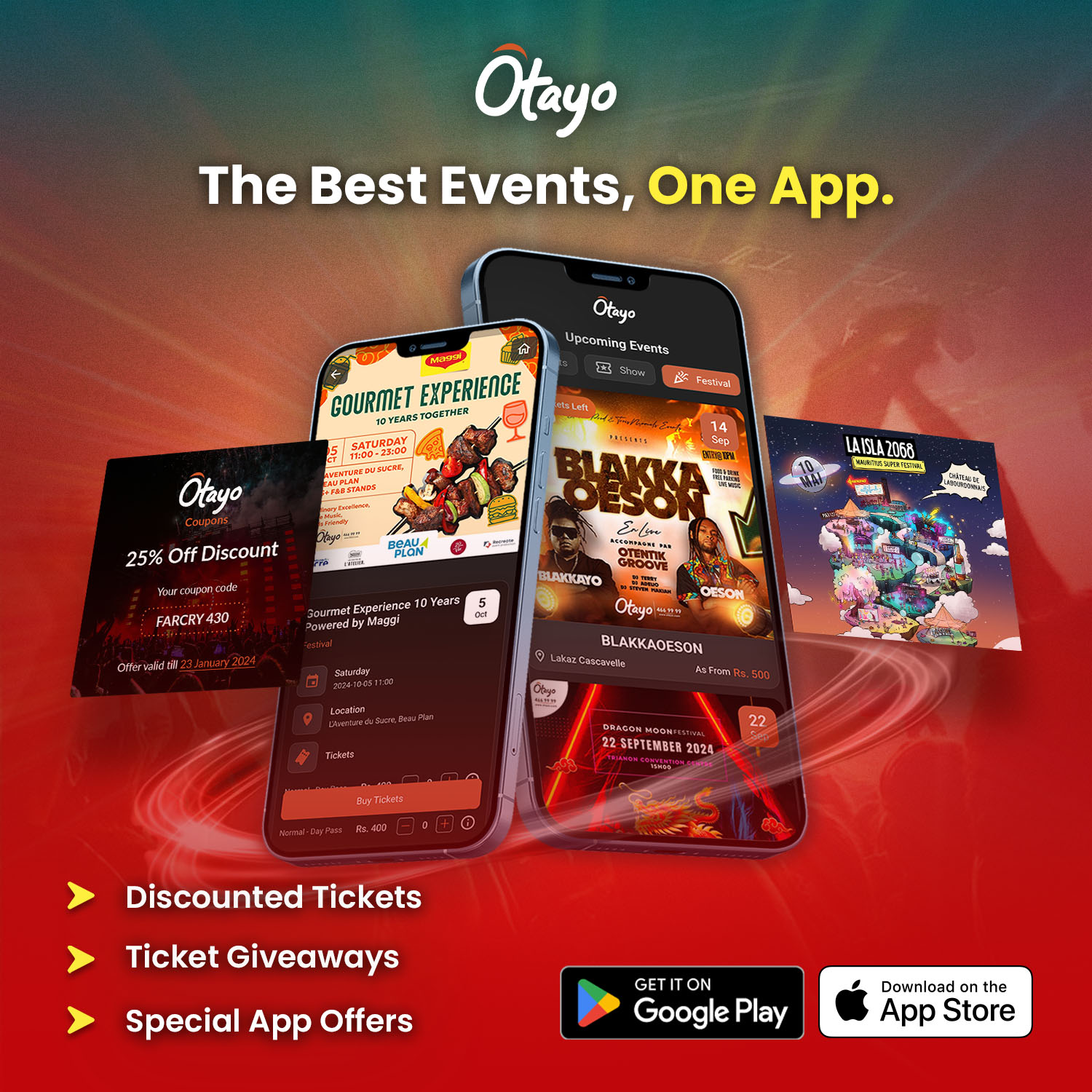 Otayo, la société de billetterie évènementielle la plus importante à Maurice, propose un grand choix d'évènements. Otayo offre un service complet, vous permettant de réserver en ligne sur une plateforme sécurisée ou à travers l’un de ses points de vente.