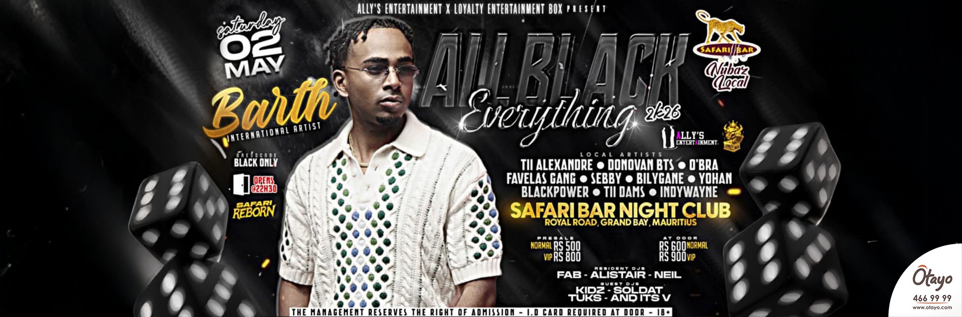 Otayo, la société de billetterie évènementielle la plus importante à Maurice, propose un grand choix d'évènements. Otayo offre un service complet, vous permettant de réserver en ligne sur une plateforme sécurisée ou à travers l’un de ses points de vente.