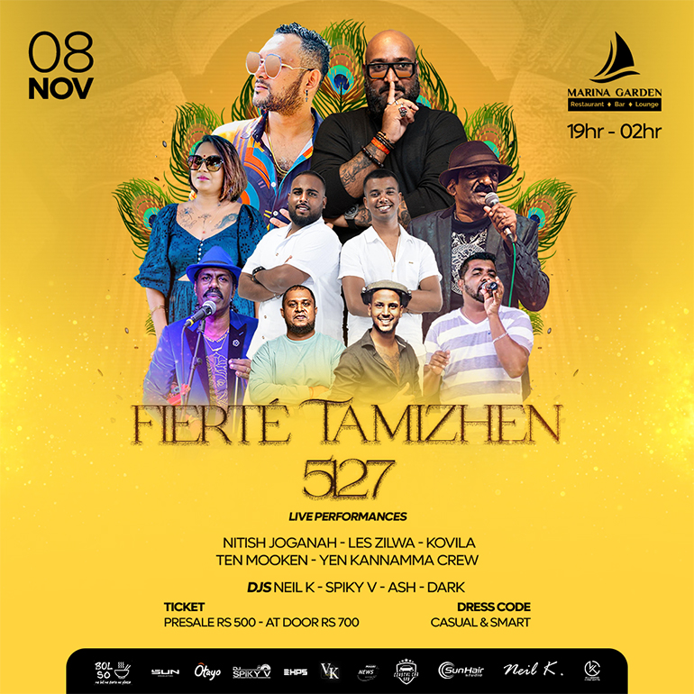 Le samedi 08 novembre 2025, le Marina Garden - United Docks, Caudan accueillera Fierté Tamizhen - 5127, un événement vibrant mêlant artistes mauriciens, performances live et DJs pour une soirée de musique, de culture et de fierté. ...