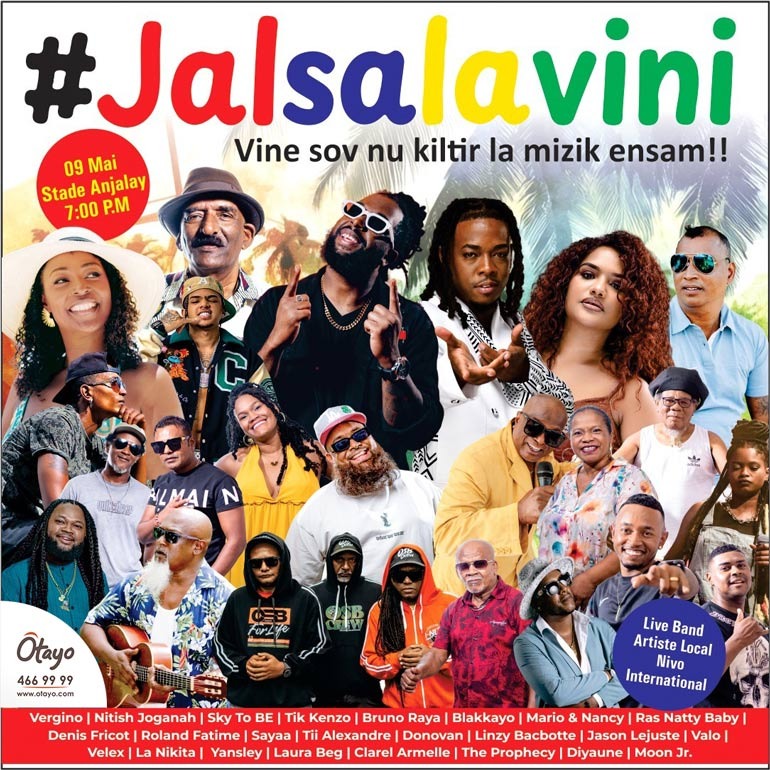 JALSA LAVINI - Grand konser live 100% lokal, le 9 mai, lor parking stad Anjalay. Li vini pa vini, viniiiiii…...