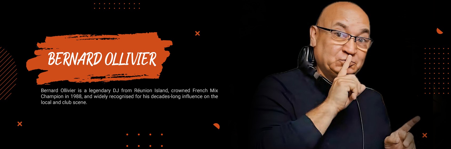 Bernard Ollivier, a true icon of the DJ scene, is widely regarded as the king of local disc jockeys in Réunion Island. Crowned French Mix Champion at Discom in 1988, he has been setting dance floors and nightclubs ablaze for decades, building a legacy that continues to this day.