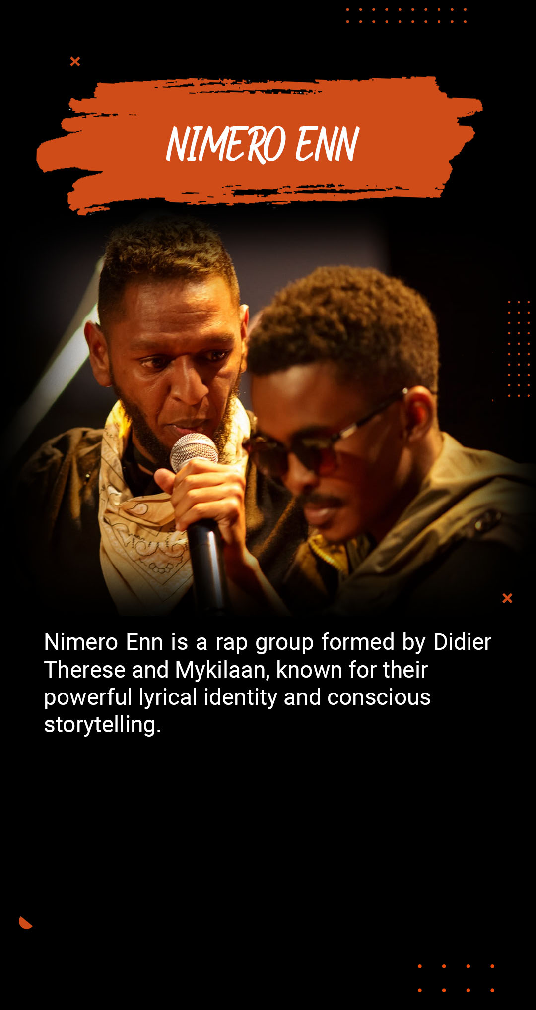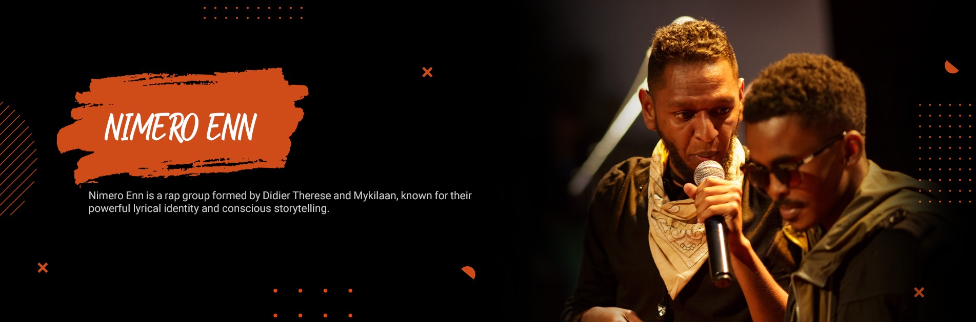 Nimero Enn is a rap group formed by Didier Therese and Mykilaan, known for their powerful lyrical identity and conscious storytelling.