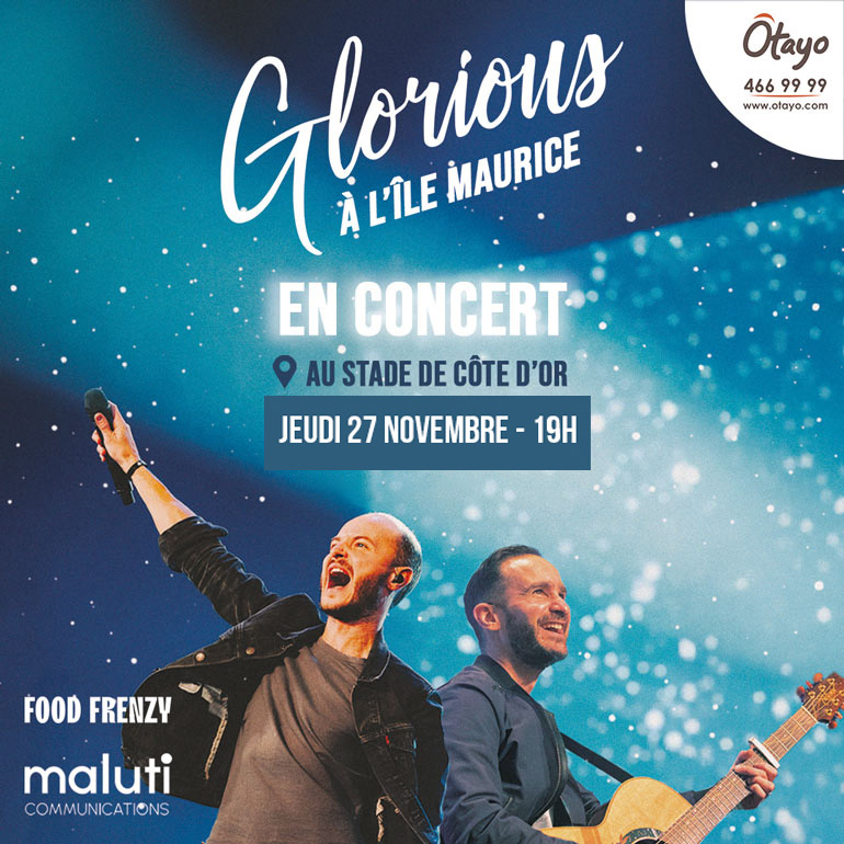 Louez, chantez, priez… et laissez votre âme s’élever ! Glorious, le groupe de louange chrétienne fait rayonner la foi à travers ses chants, arrive à l’Île Maurice pour deux soirées exceptionnelles au Stade Côte d’Or, les 27, 28 et 30 novembre prochains....